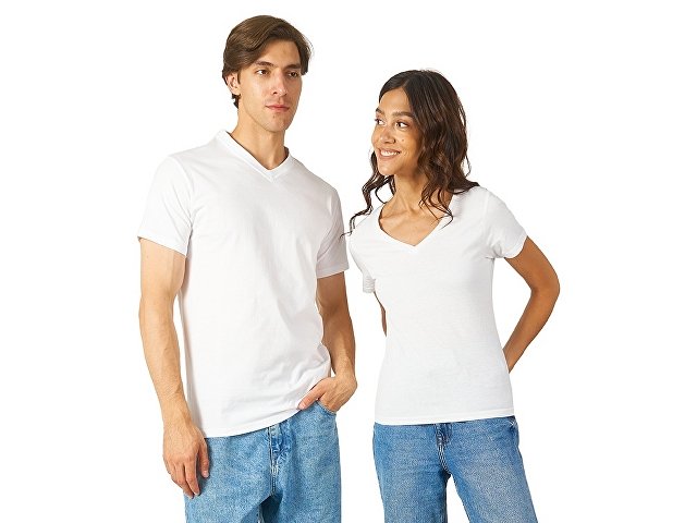 Женская футболка из натурального хлопка с элегантным V-образным вырезом. Материал отлично подходит для нанесения рекламной информации. Натуральная ткань не вызывает раздражения кожи.