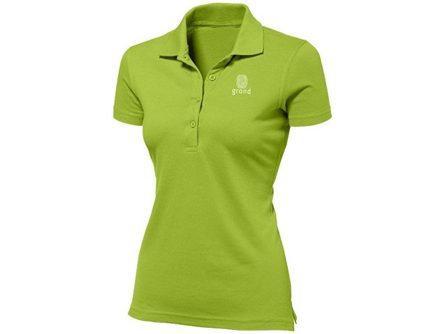 Женская рубашка-поло First. Воротник 1х1. Обшивка внутри воротника. Мужская и детская модели с 2 пуговицами, женская – с 4 пуговицами. Пуговицы с гравировкой в тон. Пике, 100% хлопок. 160 г/м2.